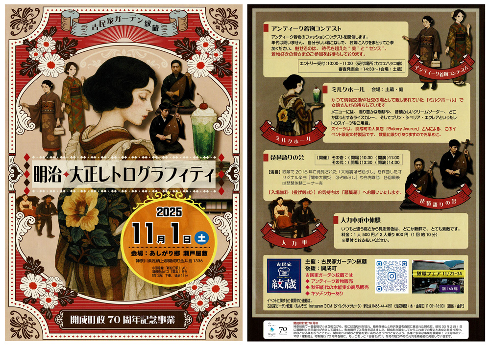 そのほか、「琵琶語りの会」によるオリジナル楽曲の演奏や、「人力車乗車体験」など、懐かしさと華やかさが融合したイベントが楽しめます。