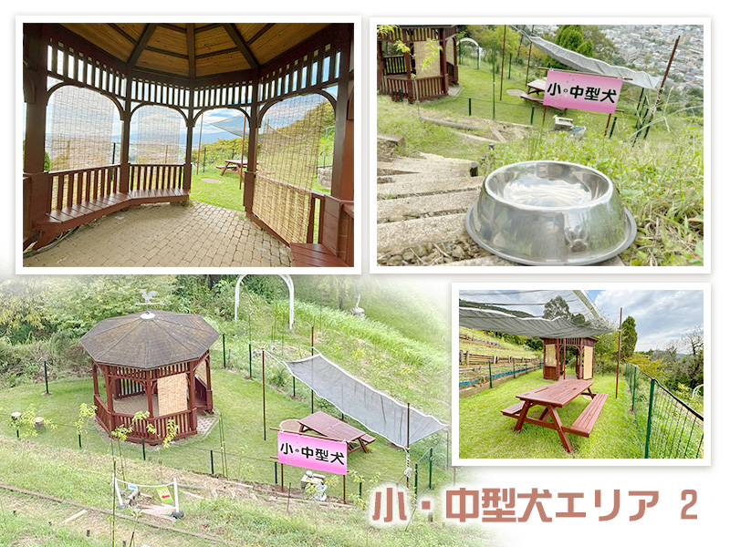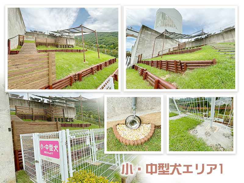 山の地形を活かしたユニークな造りが魅力で、小型犬・中型犬エリアと、大型犬専用エリア(現在建設中)に分かれており、愛犬と一緒に絶景を楽しめます。