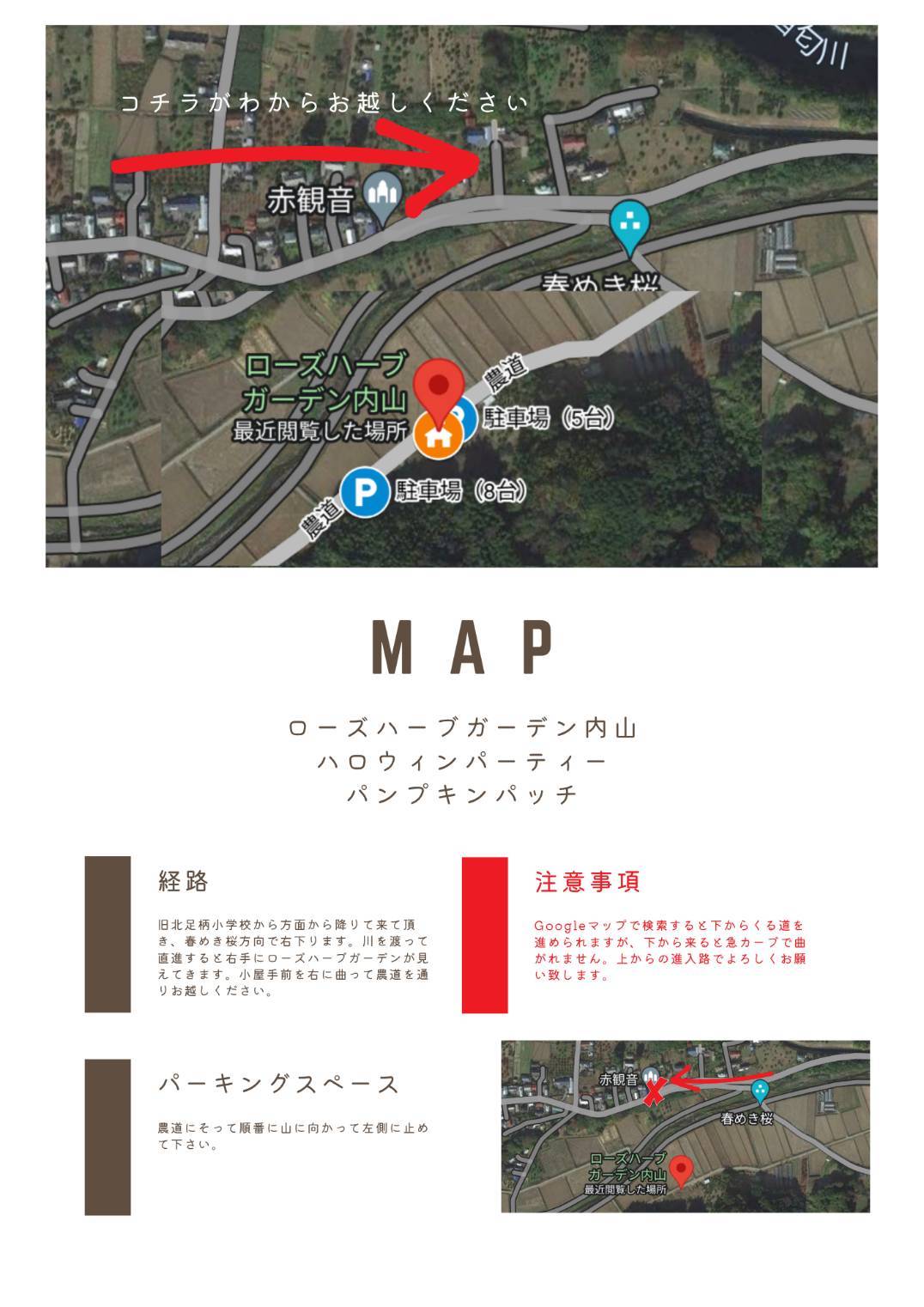 ローズハーブガーデン内山までの詳しい地図
