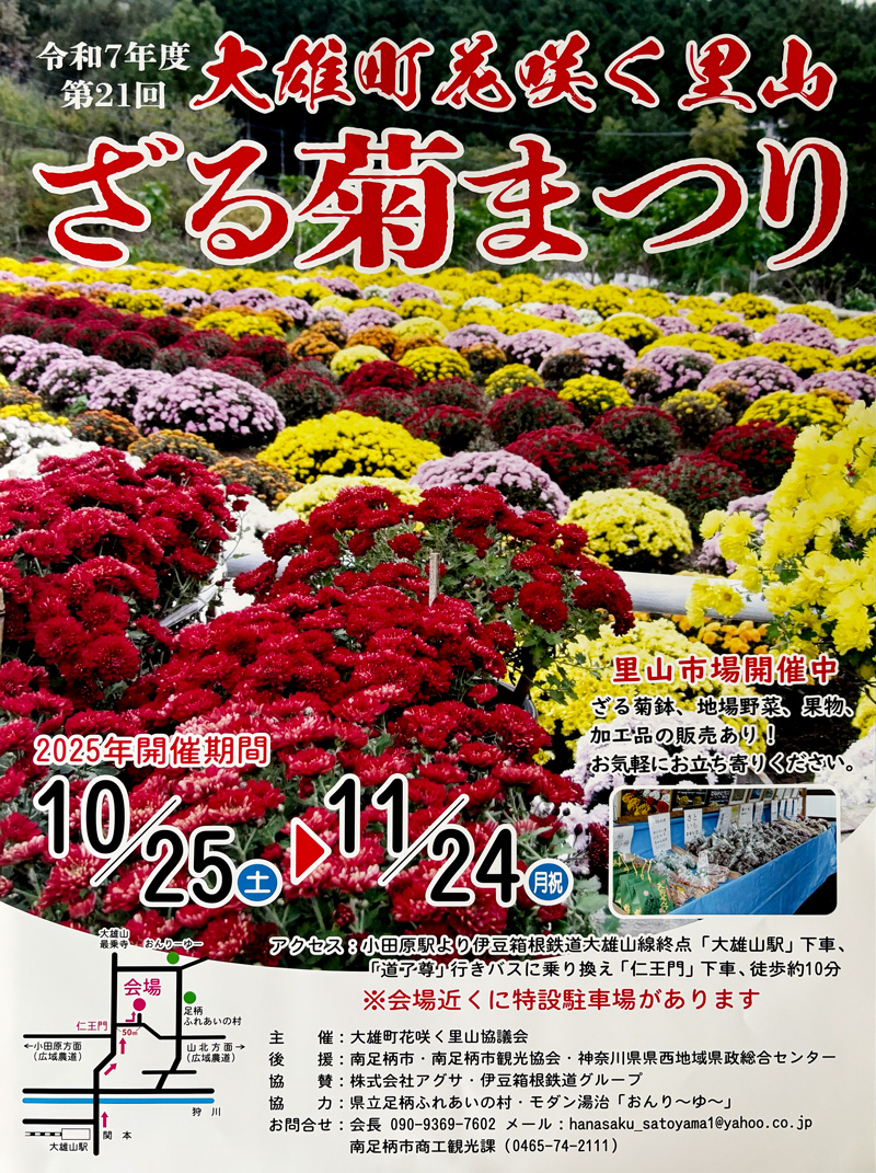- 場所:南足柄市大雄町五本松・原地区(花咲く里山)/南足柄市大雄町1301
