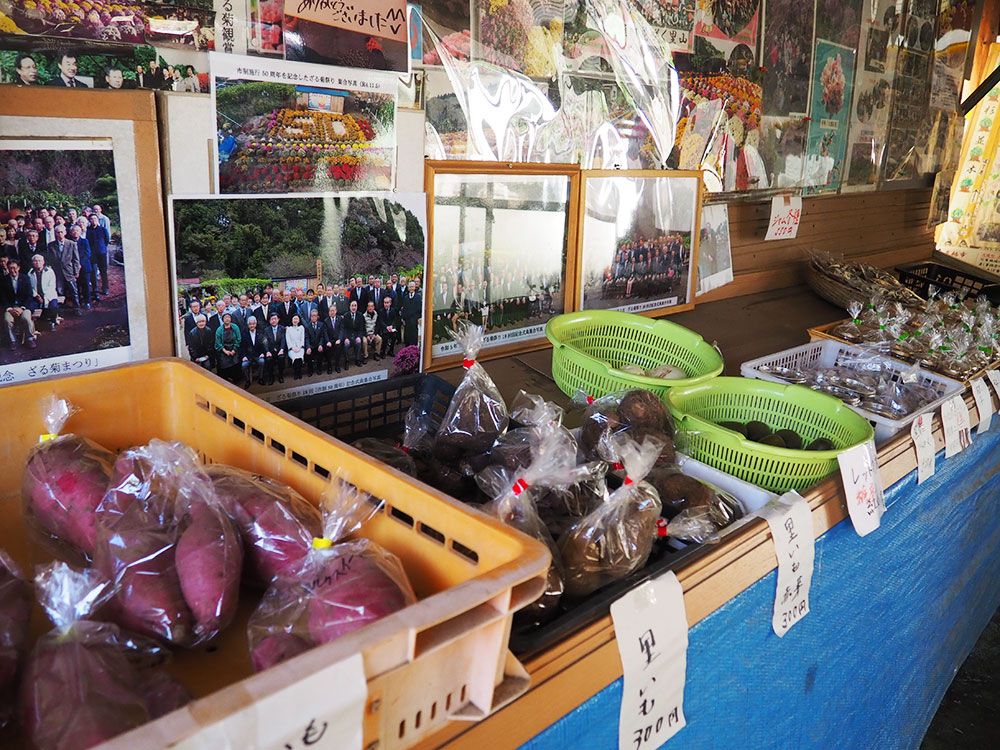 ざる菊まつり期間中は地場野菜や果物、ざる菊が販売も!