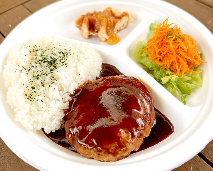 ミニサラダとミニスイーツが付いて嬉しいハンバーグランチセットをはじめ、季節の野菜をたっぷり使った「季節のカレー」、「タコライス」や「サンドイッチ」などのメニューがそろっています。