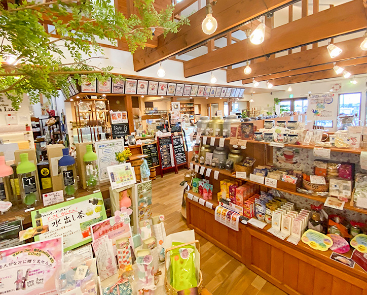 木のぬくもりに包まれた店内でくつろいだ後は、お気に入りのお土産を探すのも楽しみのひとつです。天気のいい日は、開放的なテラス席でのんびり過ごすのもおすすめ。