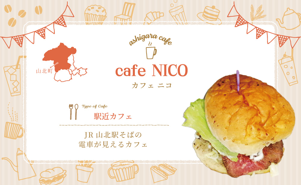 バンズパンに手作りローストビーフをはさんだ「やまきたバーガー」や、野菜をふんだんに使った「日替わりランチ」が人気。コーヒーは3種類で、店名がついた「nicoブレンド」はマイルドな味わい。和食から洋食まで幅広いメニューは地元の方や、鉄道ファン、サイクリングやハイカーなどに支持されている。