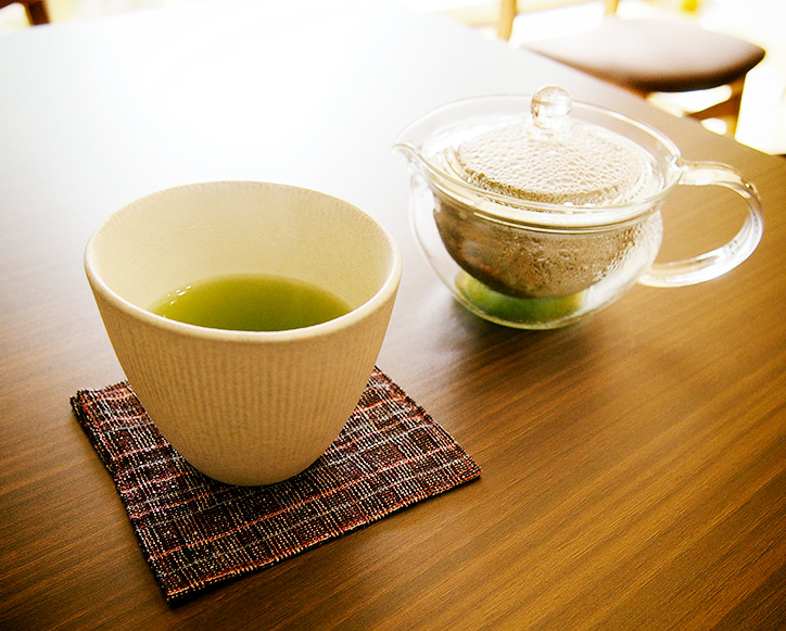 松田町の「時光窯」で制作されたオリジナル茶器は、手になじむやさしい風合いで、お店の雰囲気にも調和。細部にまでこだわりが感じられます。