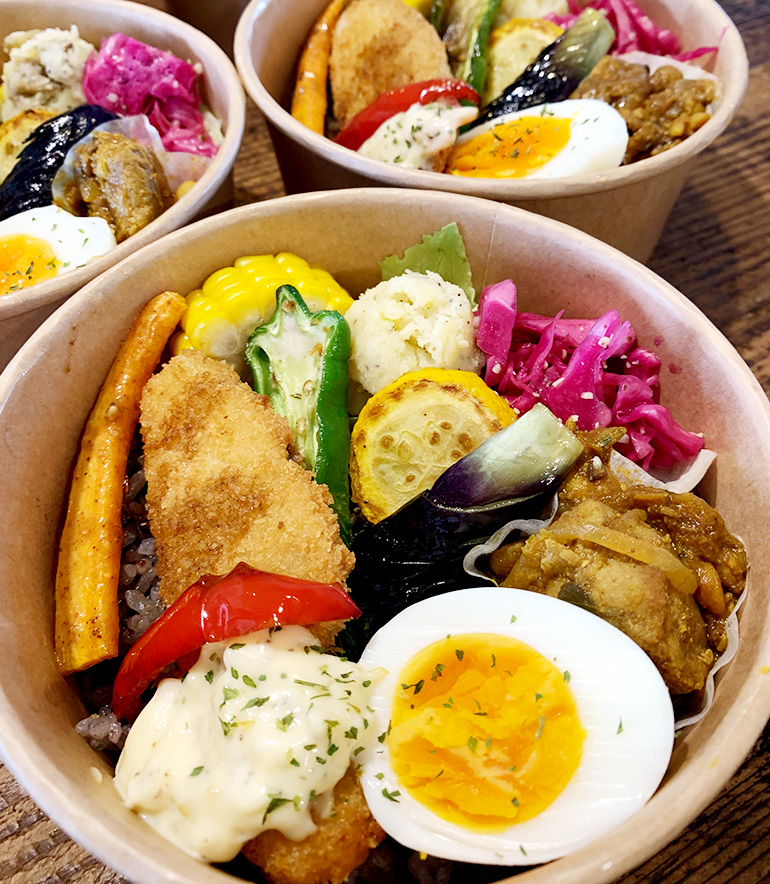 旬の地元野菜をたっぷり使ったカレーやハンバーガーに、