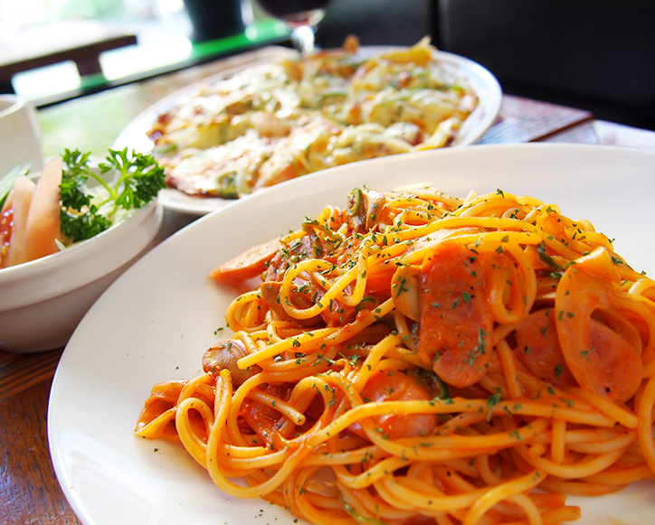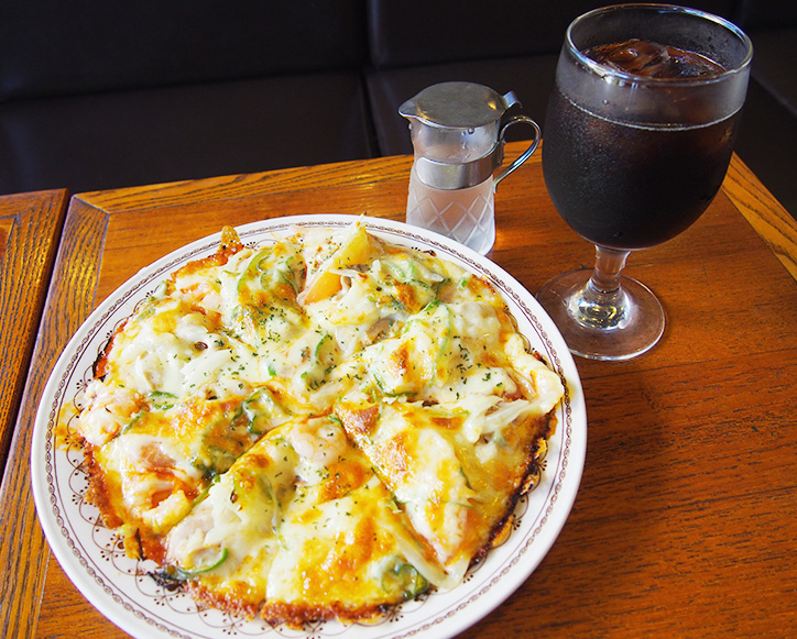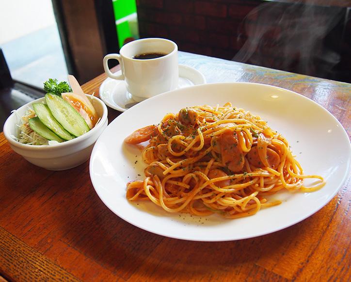 具だくさんなミックスピザやナポリタンスパゲティなど、懐かしいメニューがたくさん!ドリンク、サラダ、ミニデザート付きのセットメニューが人気。お得なコーヒーチケットやモーニングセットもあります。