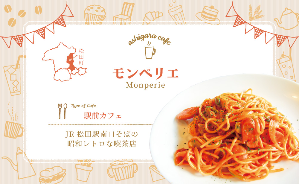 昭和48年に開店した老舗の喫茶店。可愛い金魚やテレビを眺めながら、のんびりとした時間を過ごせます。JR御殿場線松田駅南口を出たら、すぐ右手にあり、小田急線新松田駅のすぐそばで乗り換えの一休みにも嬉しい。朝は7時30分からなので、仕事前の朝食にも良さそうです。