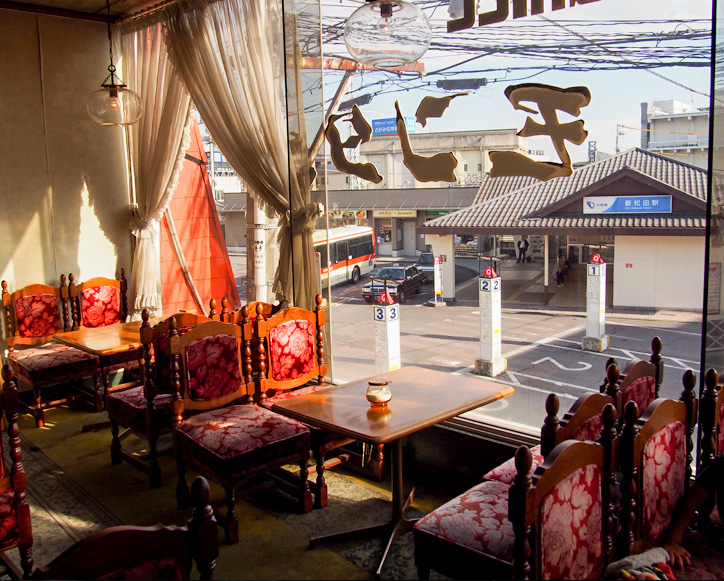 昭和レトロなインテリアが懐かしくも新鮮な「喫茶モンタナ」。大きな窓から新松田駅を見下ろせる特等席は、柔らかな陽ざしが差し込むくつろぎの空間。まるでママの家に遊びに来たかのような、どこか安心できる雰囲気が魅力です。時間を忘れてのんびりしたくなる、そんな場所です。