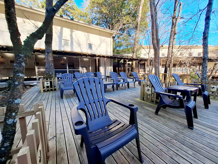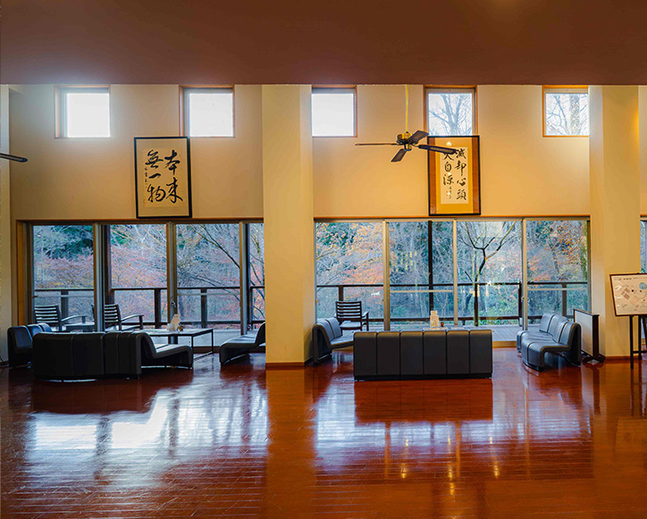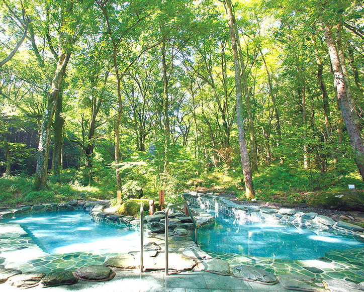 食事のみの利用もできますが、ぜひ温泉の方も堪能してほしい。広葉樹林に囲まれた開放感あふれる「森林露天風呂」は、免疫力を高めるといわれる38℃のぬる湯で、時間を忘れてゆったり過ごせます。季節ごとに変わるゆず湯やしょうぶ湯のほか、42℃の内湯も完備。