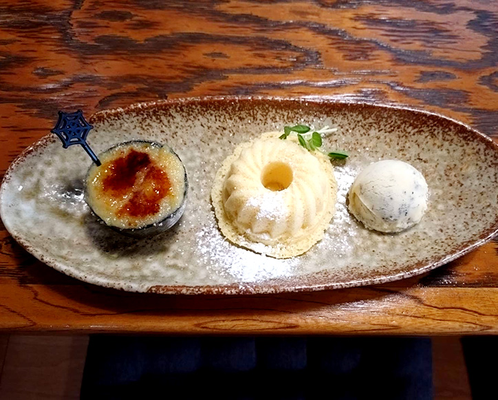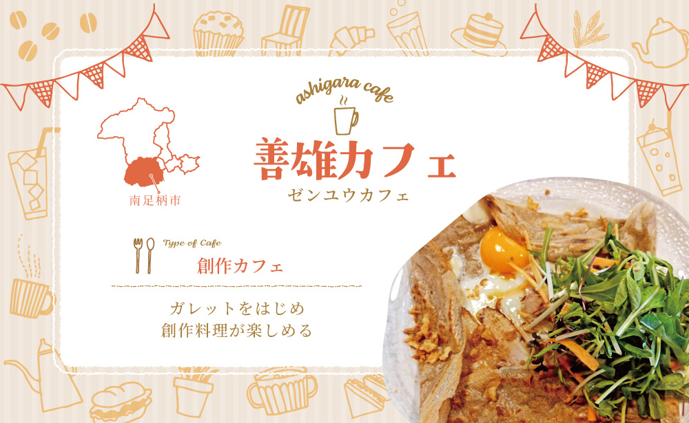 蕎麦粉100%で焼き上げるガレットは、あしがら地域では珍しい一品。香ばしい蕎麦の風味をしっかりと味わえます。さらに、開成町の「快晴茶」を使った特別なガレットもプラス料金で楽しめます。
